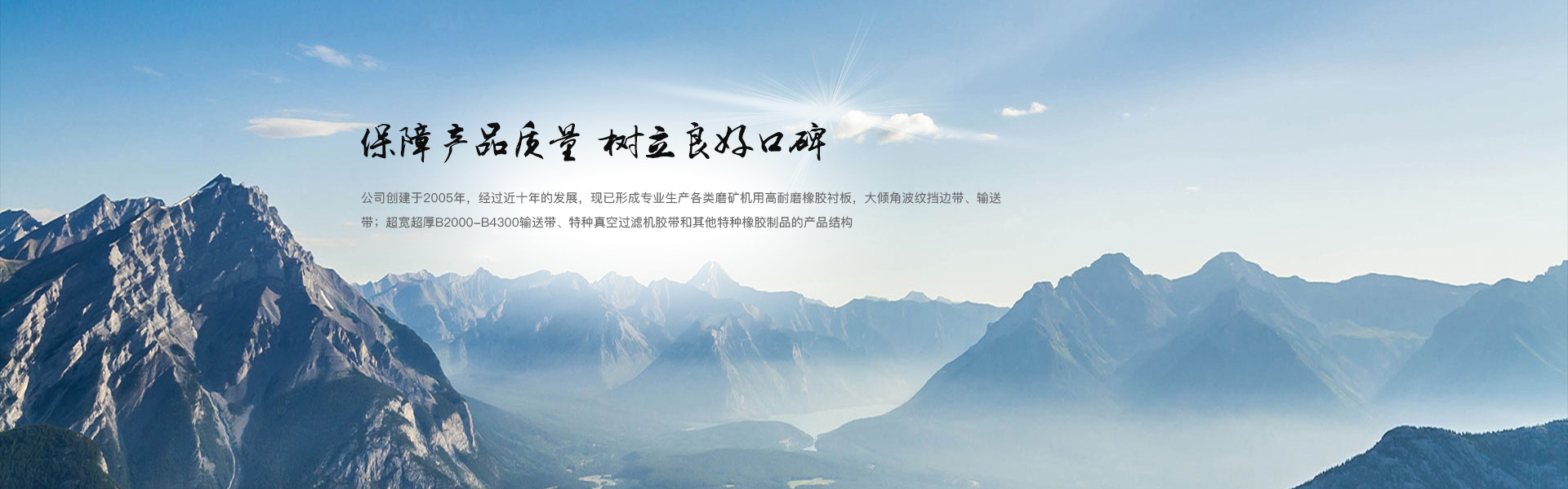 公司創建于2005年,經過近十年的發展,現已形成專業生產各類磨礦機用高耐磨襯板,大傾角波紋擋邊帶、輸送帶、鋼絲繩輸送帶;超寬超厚B2000-B4300輸送帶、特種真空過濾機膠帶和其他特種橡膠制品的產品結構。